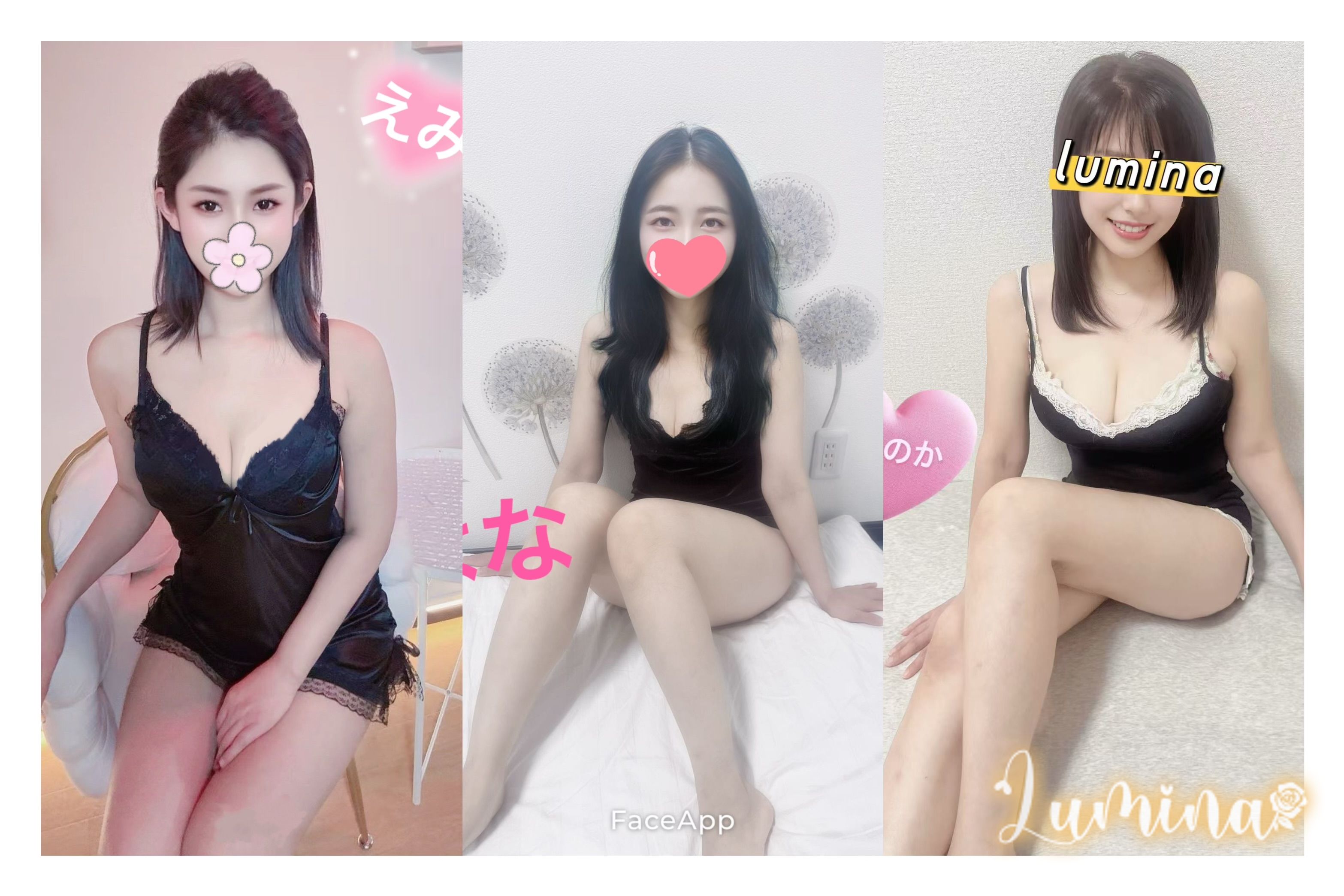 ななみちゃん12:00〜02:00 はなちゃん12:00〜02:00 えみちゃん20:00〜02:00